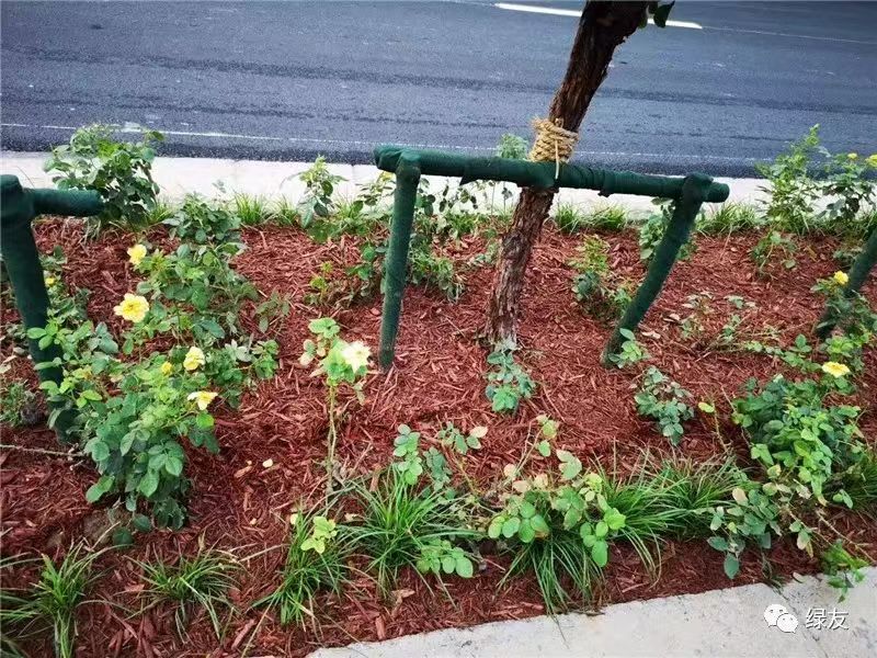 覆蓋物是一種新型的城市綠地造景材料,通過粉碎錘磨、高溫發(fā)酵、染色處理等工序,把園林廢棄物制成彩色木屑,覆蓋在土表起到保濕、保溫、滯塵、改良土壤等作用,在給裸土敷上“面膜”的同時(shí),又形成美麗的圖案裝扮環(huán)境。