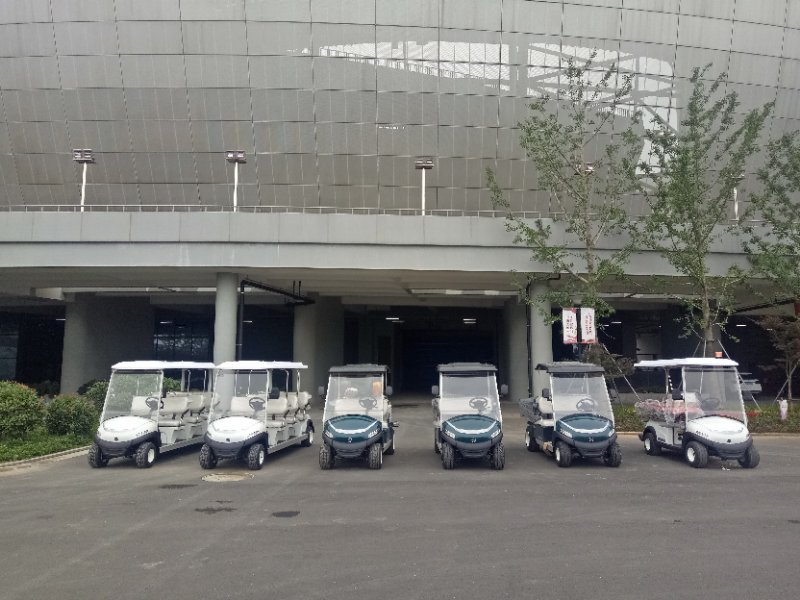 2018年7月在湖州奧體中心交付10臺綠友研發(fā)生產(chǎn)的電動觀光車,其中有4臺兩座電動巡邏車、1臺電動噴霧車、2臺電動工作車、2臺八座觀光車、1臺電動救護車。