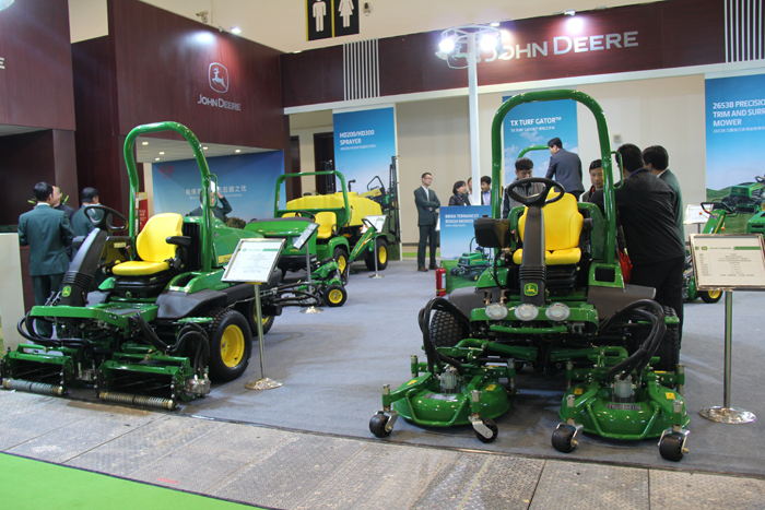 綠友展出了約翰迪爾系列剪草機、球場工作車等設備,亨特灌溉設備,GREENMAN四座系列、兩座系列球車,GEENMAN泵站以及打藥機、壓輥機等自產(chǎn)設備。