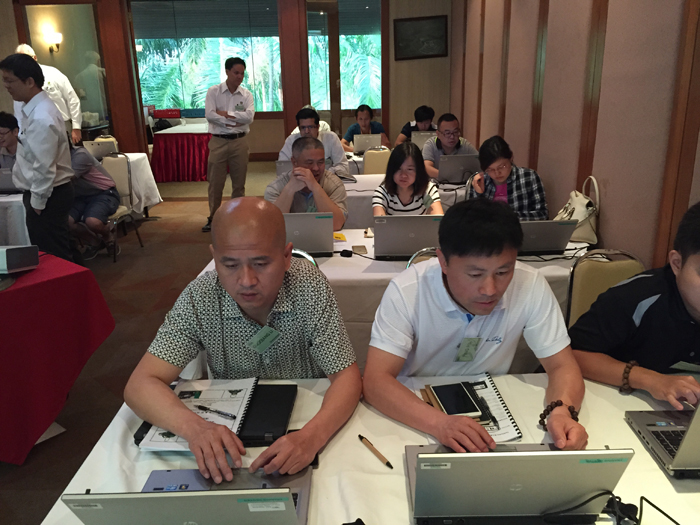 此次培訓(xùn)作為全新的A系列新產(chǎn)品全面推向市場的正式培訓(xùn),也是迪爾面對整個亞洲市場的第一次正式培訓(xùn),因此聚集了亞洲十幾個國家二十多家經(jīng)銷商的四十余名學(xué)員,為了節(jié)省費用,提高培訓(xùn)效率,這次培訓(xùn)將銷售培訓(xùn)和技術(shù)培訓(xùn)整合到了一起,主要由來自約翰·迪爾美國培訓(xùn)中心經(jīng)驗豐富的Garry和Mike兩位講師授課,而約翰·迪爾中國市場部銷售服務(wù)經(jīng)理李恩中的全程參與和同步中文翻譯并加以必要的講解和補充,使得我們對培訓(xùn)內(nèi)容能夠100%的了解和接受,大大提高了培訓(xùn)的有效性。