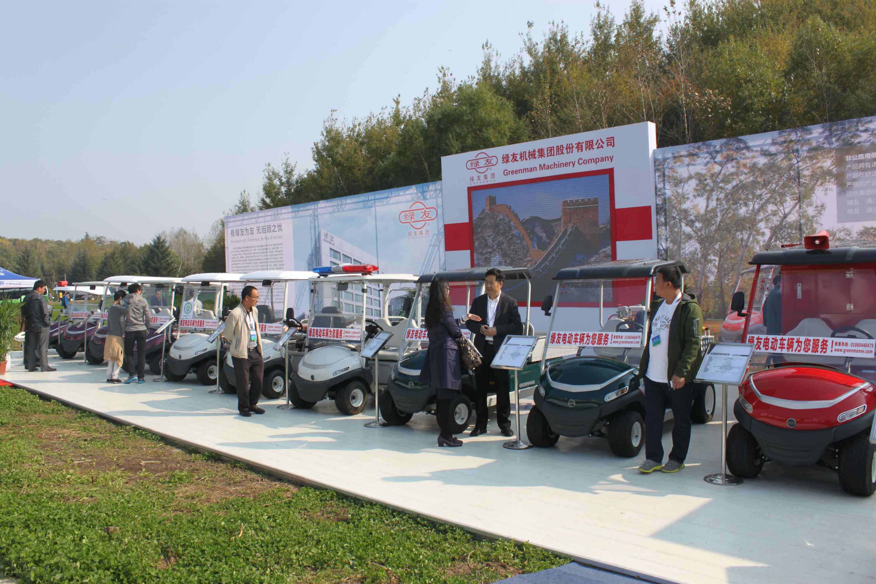 此次森林旅游節(jié)期間全國各省市設(shè)立了大型展臺(tái)展示推薦各自省份森林旅游資源和招商引資項(xiàng)目。與林業(yè)和旅游業(yè)行業(yè)密切相關(guān)的企業(yè)全方位展示公司形象和產(chǎn)品。以“圍繞綠色做文章,圍繞綠色謀發(fā)展”的綠友集團(tuán)盛裝參展,展臺(tái)面積280平方米,展品包括林業(yè)樹木處理設(shè)備、草坪養(yǎng)護(hù)設(shè)備及Greenman 全系電動(dòng)車輛登臺(tái)亮相。綠友集團(tuán)的展臺(tái)及高品質(zhì)產(chǎn)品引人駐足,蒞臨展位的各級(jí)領(lǐng)導(dǎo)仔細(xì)了解產(chǎn)品特性和功能,并在展臺(tái)表達(dá)了合作意向。全國政協(xié)副主席羅富和、國家林業(yè)局局長張建龍、吉林省副省長隋忠誠等領(lǐng)導(dǎo)蒞臨綠友展臺(tái),綠友集團(tuán)高管李玉潔詳細(xì)向羅主席等領(lǐng)導(dǎo)介紹了綠友集團(tuán)和主要產(chǎn)品,羅主席等領(lǐng)導(dǎo)對(duì)綠友集團(tuán)對(duì)于綠色產(chǎn)業(yè)的支持表達(dá)了肯定,對(duì)綠友集團(tuán)堅(jiān)持走自主研發(fā)生產(chǎn)之路表示贊許和鼓勵(lì)