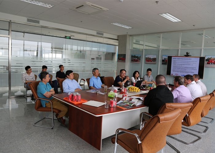 5月8-9日的綠友園,碧空如洗,清風(fēng)獵獵。綠友集團(tuán)迎來了美國(guó)木霸克公司首席執(zhí)行官戴夫?赫爾、高級(jí)副總裁約翰?福特、工業(yè)設(shè)備國(guó)際部經(jīng)理柯爾特?麥克穆倫、工業(yè)設(shè)備銷售總監(jiān)邁克爾?斯坦頓一行四人的到訪。