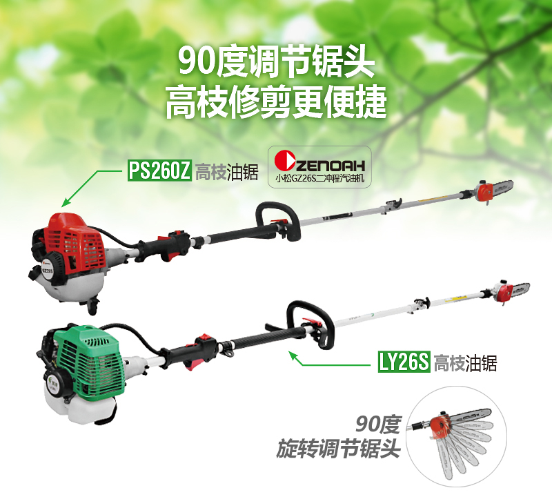 美神高枝油鋸,90度可旋轉(zhuǎn)刀頭,奧里根導(dǎo)板和鏈條;整機(jī)長(zhǎng)度3米,適用于高空樹枝的修伐。