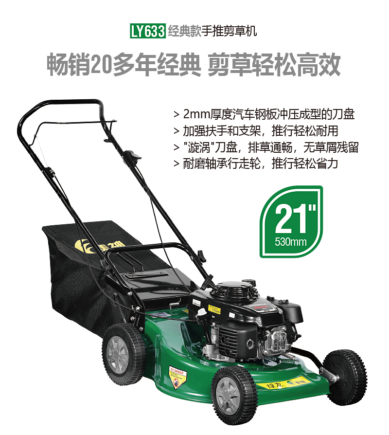 21寸草坪修剪機(jī)具有自走和手推兩種行走方式可供選擇。