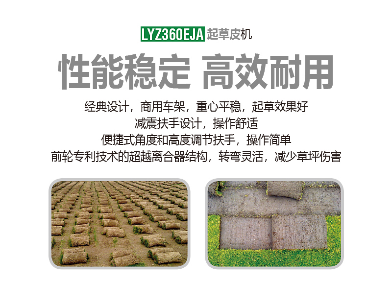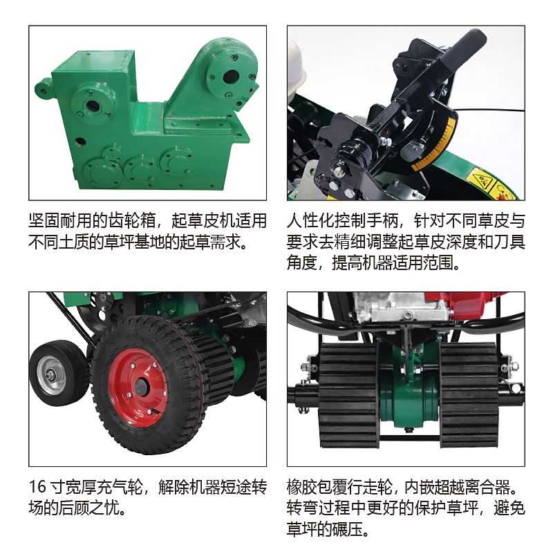 美神起草皮機根據(jù)人體工程學原理,改進了操作方式,扶手增加減震,后輪為萬向輪并配有超越離合器,轉(zhuǎn)彎方便且不損壞草坪,增加了操作者舒適度。本產(chǎn)品可根據(jù)不同草種和不同狀態(tài)草皮隨意調(diào)整起草的深度、角度,效率高。
