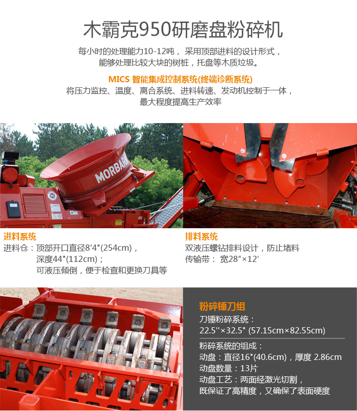 950立式粉碎機,每小時的處理能力10-12噸, 采用頂部進料的設(shè)計形式,能夠處理比較大塊的樹樁,托盤等木質(zhì)垃圾。
