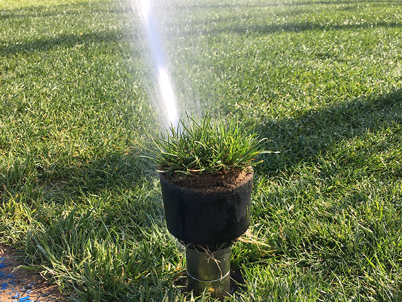 噴頭全部采用雨鳥8005噴頭,并全部配備了草坪杯,實(shí)現(xiàn)場(chǎng)地內(nèi)全部是草坪地面,看不到噴頭坑,保持美觀的同時(shí)也避免球員在運(yùn)動(dòng)時(shí)造成球員的腳傷。