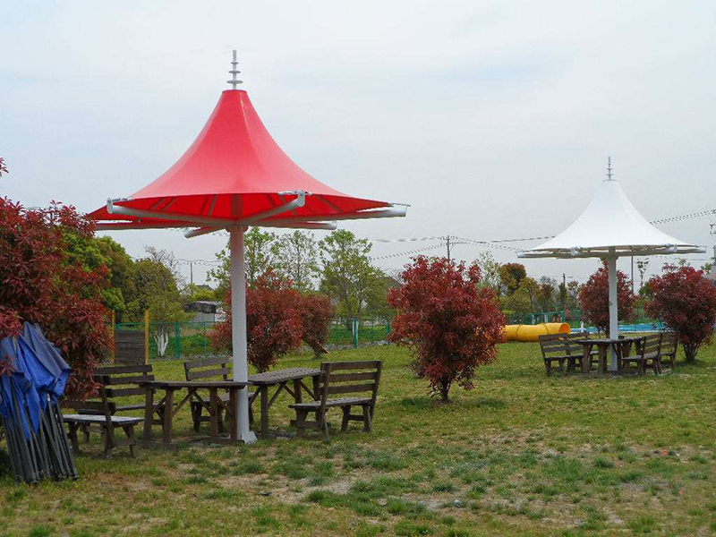 由于膜材料本身特有的顯色性,在夜間彩燈的映射下能形成絢麗繽紛的景觀。不僅為人們提供遮陽避雨的空間。同時(shí),更由于這種生動(dòng)活潑的造型能給人們帶來時(shí)尚、輕松的休閑感受,所以廣受歡迎。