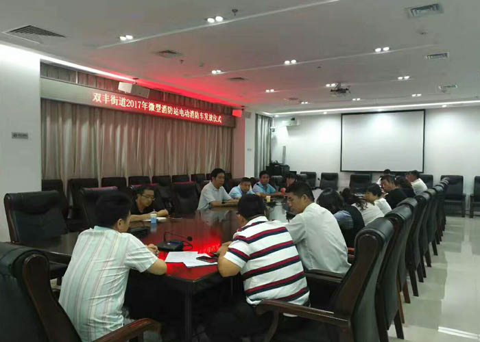 8月4日上午9點(diǎn)半,綠友集團(tuán)向雙豐街道辦事處交付了一批全電動(dòng)高壓細(xì)水霧式微型消防車。為突出建設(shè)平安社區(qū)的決心,雙豐街道辦事處舉行了隆重的微型電動(dòng)消防車發(fā)放儀式。