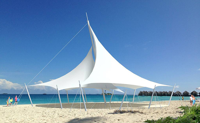 2、還需定期檢查張拉膜公司是否處在正常工作狀態(tài),如果發(fā)現(xiàn)膜面有破損應(yīng)該及時由專業(yè)人員修復(fù)。 應(yīng)該根據(jù)現(xiàn)場環(huán)境來選擇防腐措施和防腐材料。定期檢查支承結(jié)構(gòu)、索(特別是那些深入固定端的)、夾板和螺栓連接等處的腐蝕情況。若有腐蝕發(fā)生,首先應(yīng)除去腐蝕層,然后重新做好表面的防腐處理。若螺栓連接發(fā)生腐蝕,則應(yīng)予以替換。