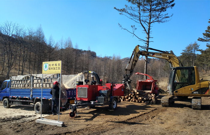 綠友集團總部森防裝備事業(yè)部、售后服務部、撫順綠友園林機械有限公司協(xié)同在撫順市大伙房實驗林場現場給參會人員講解、演示了GREENMAN CM15R病疫木粉碎機、CH25C病疫木粉碎機在山場就地粉碎處理感染松材線蟲病疫木方案,與會嘉賓紛紛記錄、拍照,索取資料,積極響應國家關于松材線蟲病疫木山場就地粉碎處理的相關政策。